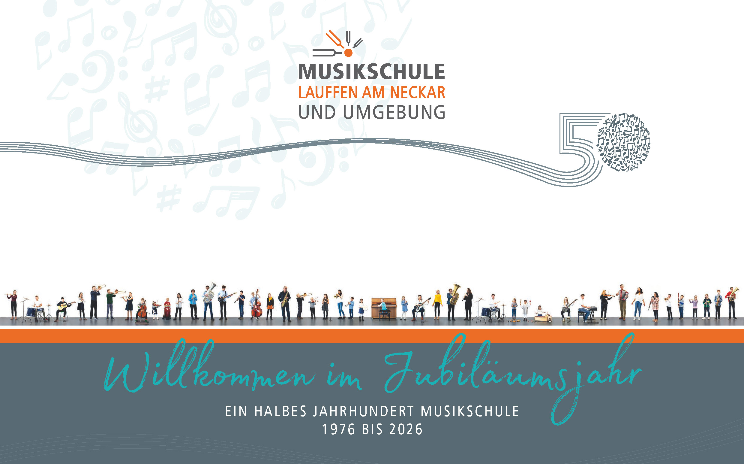 Kennen Sie schon unsere Jubiläumsbroschüre anlässlich des 50-jährigen Bestehens der Musikschule? Die Broschüre bietet einen spannenden Einblick in unsere Ausbildungsangebote, enthält interessante Interviews mit Zeitzeugen und ehemaligen SchülerInnen sowie eine Übersicht aller Termine im Jahr 2026. Ergänzt wird sie durch musikalische Rätsel für Groß und Klein und zahlreiche eindrucksvolle Fotos aus der Geschichte unserer Musikschule.