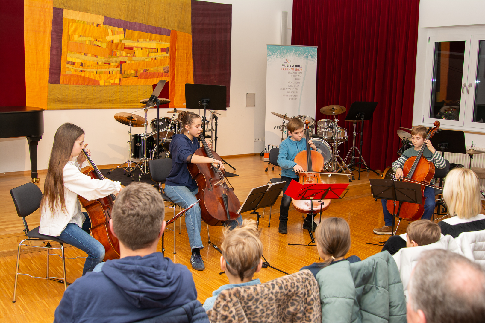 …für unsere Online-Instrumentenvorstellung! Im Nachgang unserer bekannten Informationsveranstaltung “Tag der Instrumente” können Sie sich einen Eindruck zu unseren Fächern und Instrumenten verschaffen. Unser Kollegium ist in der Pandemiezeit vor die Kamera getreten und hat kurze Vorstellungsvideos der Instrumente und Ensembles aufgenommen. Über nachfolgenden Link gelangen Sie zur Playlist in unserem YouTube-Kanal… Tag der Instrumente – online Klicken Sie sich nach Belieben durch die verschiedenen Videos. Für ein persönliches Beratungsgespräch mit einem Fachlehrer, kontaktieren Sie uns bitte per Mail (info@lauffen-musikschule.de) oder Telefon (07133-4894). Wir freuen uns auf Ihre Anfragen! Falls Sie direkt ein bestimmtes Fach/Instrument “ansteuern” möchten, so können Sie dies über nachfolgende Links tun. Tasteninstrumente / Schlagzeug Klavier – Keyboard – Akkordeon – Schlagzeug Streichinstrumente Geige – Suzuki-Violine – Bratsche – Cellissimo-Kids – Kontrabass Zupfinstrumente Gitarre – Jazz-Gitarre – E-Gitarre – Lateinamerikanische Gitarre Blasinstrumente Blockflöte – Querflöte – Klarinette – Saxophon – Trompete – Waldhorn – Euphonium – Posaune Frühförderung (EMP) / Theorie-Komposition / Ensembles Musikinsel, Musikalische Frühförderung & Musikwerkstatt – Musiktheorie & Komposition – Orchester & Streicherklasse Darüber hinaus haben einige Kolleginnen und Kollegen ein Musikschullied als Audio-File aufgenommen, worüber man dem Klang der Instrumente unabhängig vom Bild lauschen kann… Akkordeon Bassblockflöte mit Klavierbegleitung Bratsche mit Klavierbegleitung Geige mit Klavierbegleitung Geige Gesang mit Klavierbegleitung Gitarre Keyboard Klarinette mit Klavierbegleitung Klarinette Klavier Querflöte Saxophon Sopranblockflöte mit Klavierbegleitung Tenorblockflöte mit Klavierbegleitung Trompete Vibraphon