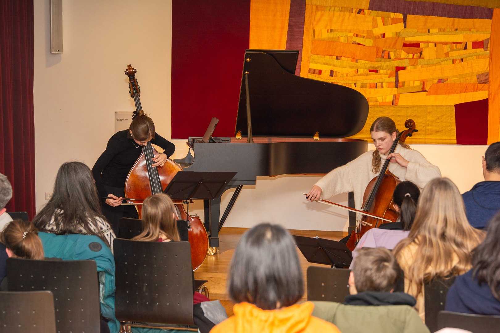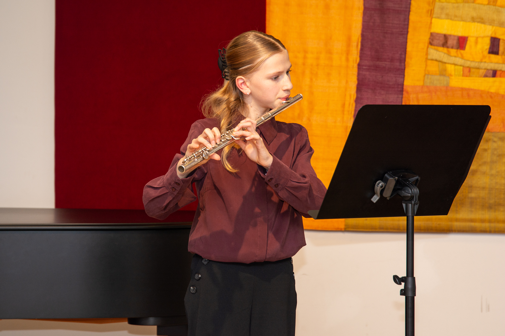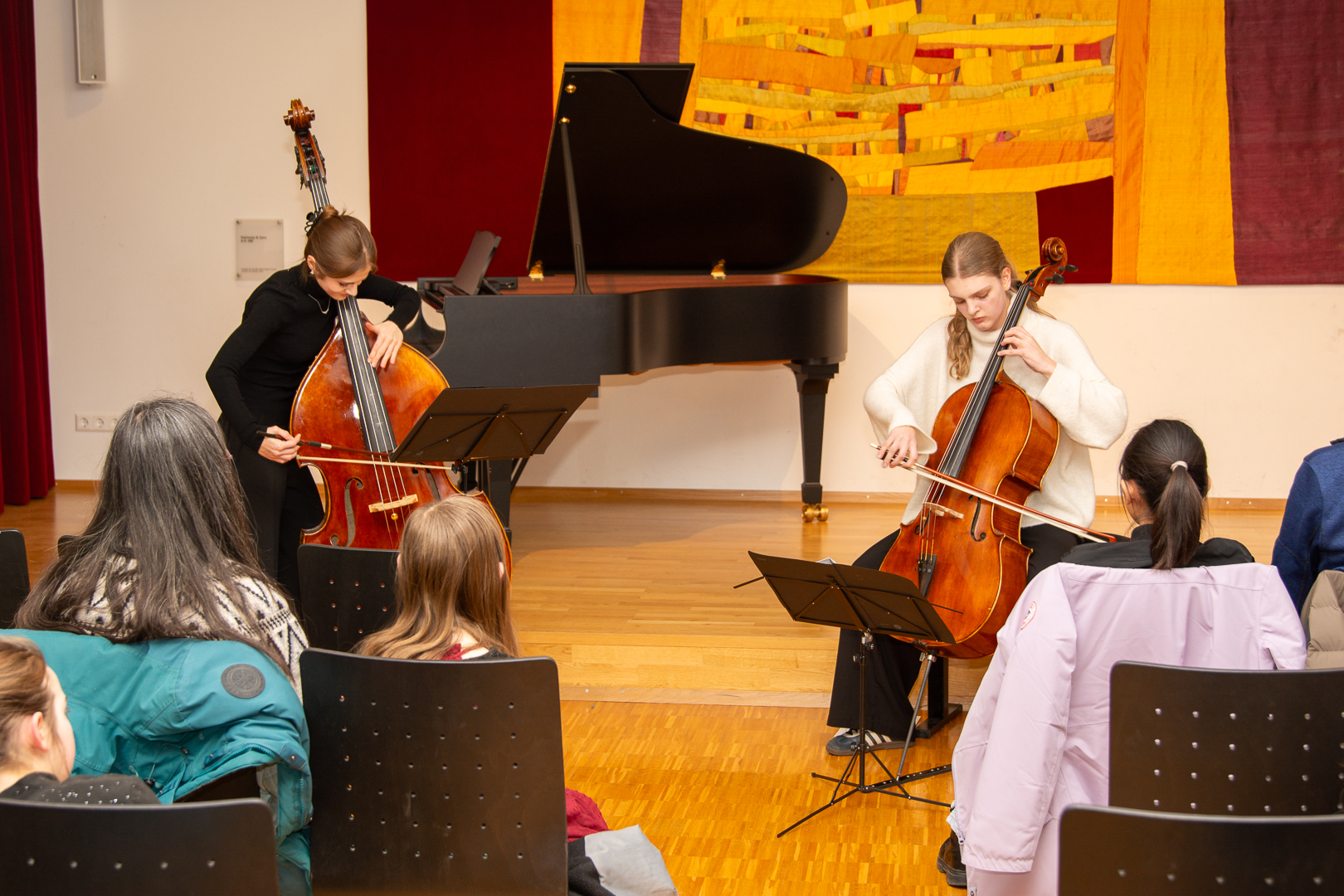 Wir laden Sie herzlich zur ersten öffentlichen Musizierstunde mit erwachsenen Musikschülerinnen und Musikschülern ein:Sonntag, den 8. Februar, um 11 Uhr im Orchestersaal in der Südstraße Bei freiem Eintritt erwartet Sie ein abwechslungsreiches Programm mit solistischen und kammermusikalischen Beiträgen aus verschiedenen Stilrichtungen. Wir freuen uns auf ein zahlreiches Publikum und inspirierende musikalische Momente. Im Anschluss an das Konzert besteht Gelegenheit zu Austausch und Gesprächen – denn lebenslanges Lernen ist ein bereichernder Bestandteil unserer Musikschule. Das Programm veröffentlichen wir in der Vorwoche an dieser Stelle. Programm (Änderungen vorbehalten) Fortune my foe – Volkslied (England 16. Jh.)Pavane – Thoinot Arbeau (Frankreich 16. Jh.)Un jeune Fillette – Volkslied (Frankreich 16. Jh.)Spagnoletta – Michael Praetorius (1571-1621) Karin Münch (Sopranblockflöte), Dorothee Ehmer (Altblockflöte), Frauke Rost (Tenorblockflöte), Adriana Mueller Baldo (Baßblockflöte und Perc.) Gigue aus 3. Suite BWV 1009 – Johann Sebastian Bach (1685-1750)Estelle Marchand (Viola) Walzer op.34, Nr.1 – Jean Sibelius (1865 -1957)Evita Mayer (Klavier) Violinduo op.5 No.1 Allegro – Luigi Boccherini (1743-1805)Juliane Landwehr & Amelie Jerlitschka (Violine) Klarinettenduo Nr. 1 1. Satz Allegro commodo – L. van Beethoven (1770-1827)Michelle Buchholz & Aristides Porto (Klarinette) Hornkonzert Nr.3 Es-Dur KV 447 2. Satz Romanze – W.A.Mozart (1756-1791)Denise Bratz (Waldhorn) & Nathalie Herres (Klavier) Andantino – Franz Joseph Haydn (1732-1809)In Dreams – Fran Walsh & Howard ShoreClaudia Grebe (Querflöte) & Lizanne Grebe (Klavier) Quartett op. 1 1. Satz – Walter Rabl (1873-1940)Michelle Buchholz (Klarinette), Estelle Marchand (Klavier), Peter Seyb (Violine) & Andreas Pflüger (Cello) Nocturne – Michail Glinka (1804-1857)Fabian Seyb (Klavier) Logorrhö und Quaselitis Kanon – Uli Führe (*1957)Tratschende Frauen Kanon – György Ligeti (1923–2006)Der Weg zur Oper Kanon – Oliver Gries (*1973)Claudia Ebert, Beate Reber, Gudrun Hawighorst & Doris Petzold (Gesang) Summertime – George Gershwin (1898-1937), arr. Dennis ArmitageRhapsody in Blue – George Gershwin (1898-1937), arr. Dennis ArmitageKathrin Weber (Altsaxophon), Lothar Elflein (Tenorsaxophon), Karsten Wiese (Baritonsaxophon) Yesterday – J. Lennon (1940-1980) & P. McCartney (1942), arr. Alain CrepinHabanera aus Carmen – Georges Bizet (1838-1875), arr. Udo WessiepeMichelle Buchholz (Klarinette), Kathrin Weber, Susanne Gwiasda, Günter Zimmer, Aristides Porto (Altsax.), Björn Ries, Lothar Elflein (Tenorsax.), Karsten Wiese (Baritonsax.), Denise Bratz, Susana Venereo (Waldhorn)