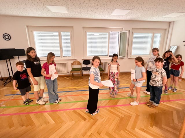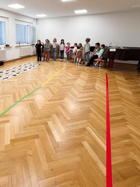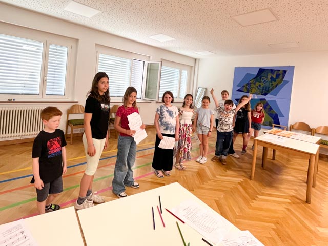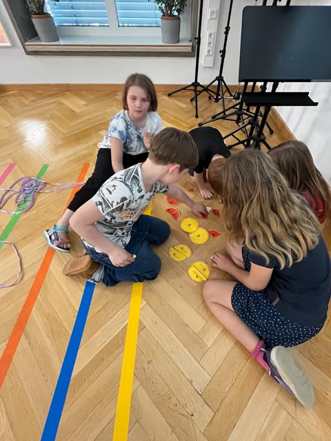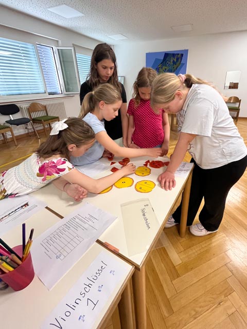 Zum Abschluss bestand die Aufgabe darin, den eigenen Zug mit einem passenden Rhythmus zu gestalten. Mit viel Freude und Begeisterung waren alle Suzuki-Kinder dabei und konnten auf unterhaltsame Weise Neues lernen.