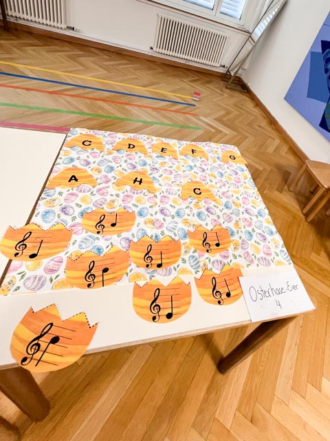 Am Samstag, den 18. April, begaben sich die jungen Teilnehmer*innen auf ein spannendes Rhythmus-Abenteuer. An verschiedenen Stationen konnten sie spielerisch ihr musikalisches Wissen und Können erweitern: Bei den Notenschlüsseln, dem Notenschreiben, dem Notenscheibenspiel zu den Notenwerten, den Osterhasen-Eiern sowie am rhythmischen Zug und auf dem rhythmischen Weg sammelten sie fleißig Stempel.